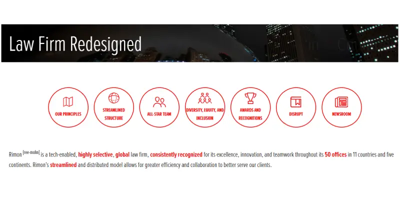 Rimon Law is a full-service global law firm built for today’s interconnected world. With more than 50 offices in 11 countries and expertise covering over 50 practice areas, Rimon serves over 6,000 clients. They combine deep legal experience with a nimble, modern structure to meet cross-border challenges and emerging legal needs.